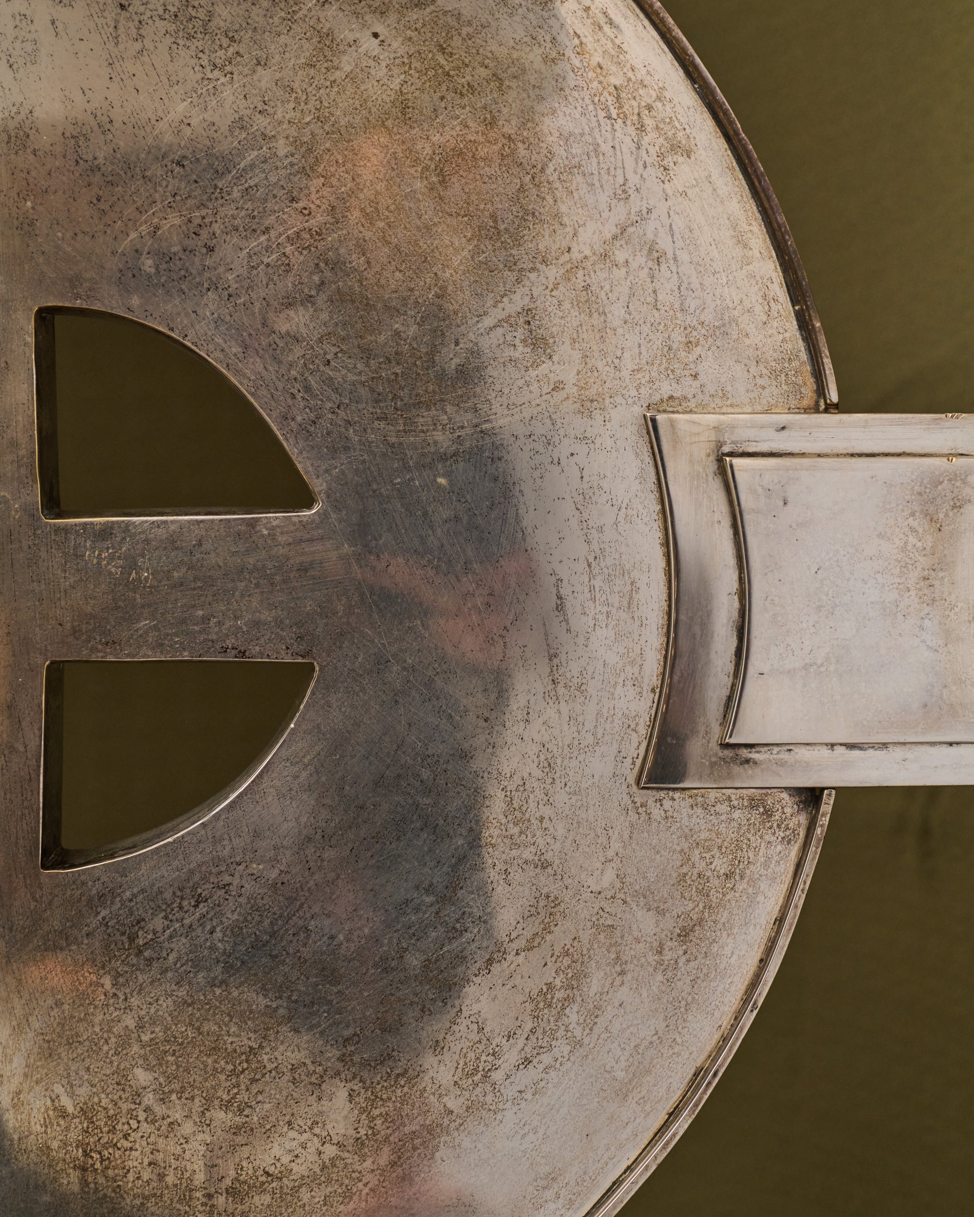 Carpet soft underfoot, totems standing still, metal catching the light.