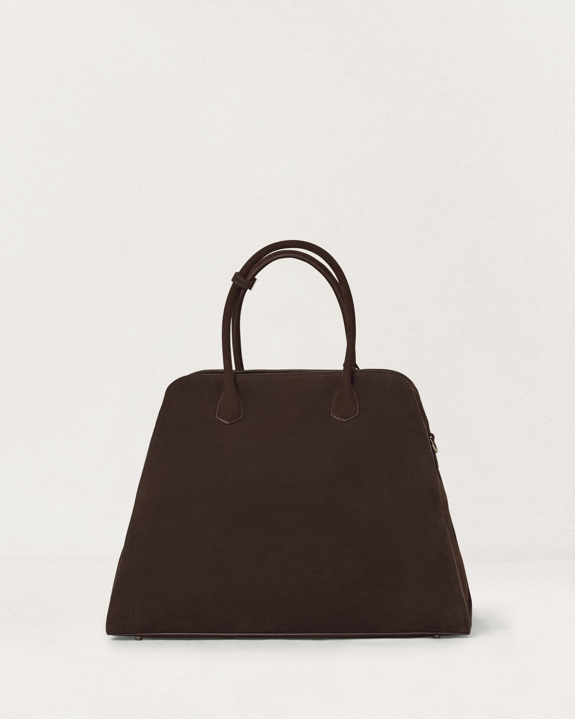 The Tetra is conceived as an echo of elemental forms, translating the rigor of the tetrahedron into leather. The Large bag is a generous day bag, spacious and functional, carrying essentials with ease.